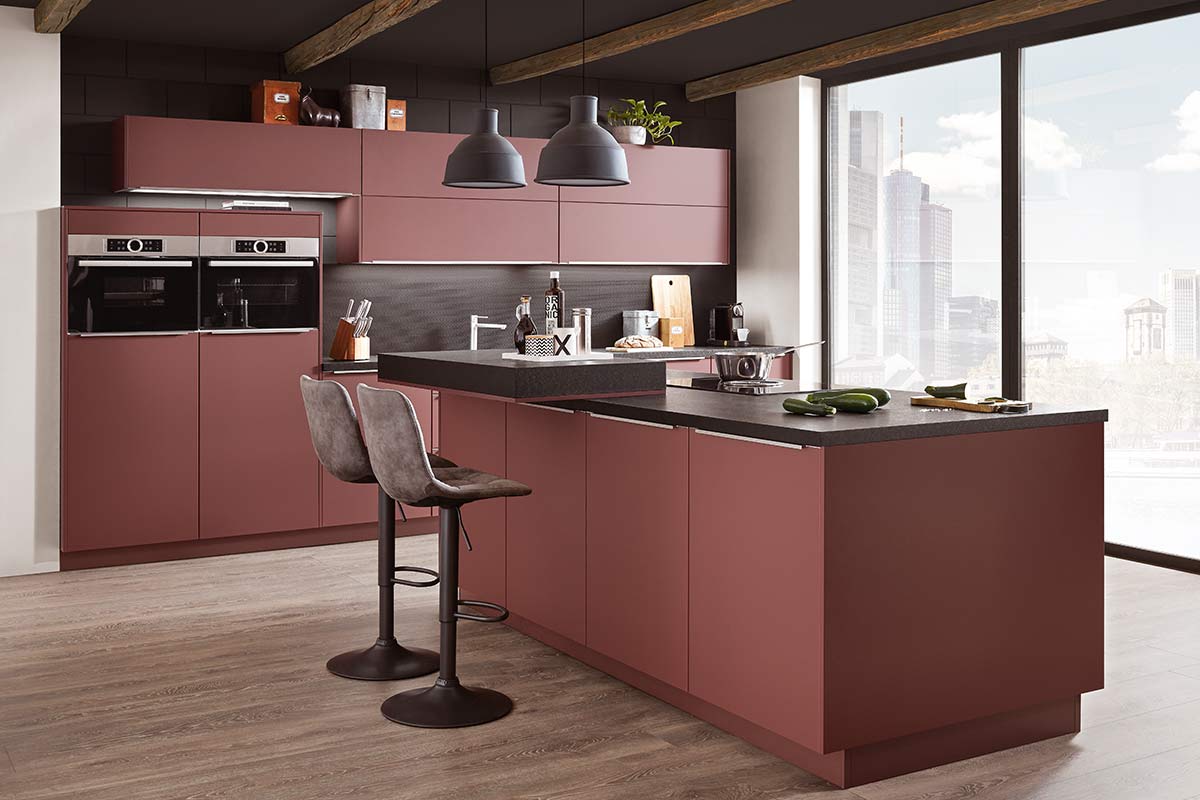Μια πραγματική οικογενειακή κουζίνα: Αυτός ο σχεδιασμός σε μορφή L λάμπει με τον ενσωματωμένο χώρο φαγητού και το ύψος XL για άφθονη πρακτική αποθήκευση.
